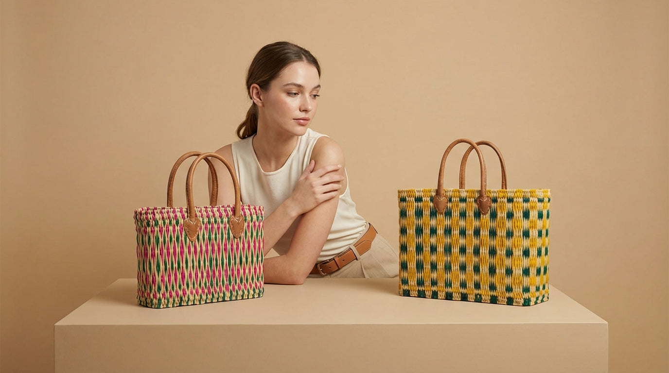 Handwoven with care and finished with rich leather details, this timeless duo brings effortless style to every day, from city errands to weekend escapes.